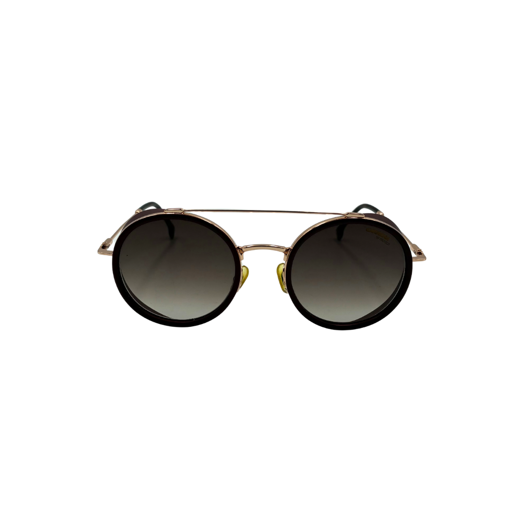 Lentes de sol carrera redondos con marco color burgundy con herrajes dorados. Inclyu estuche.