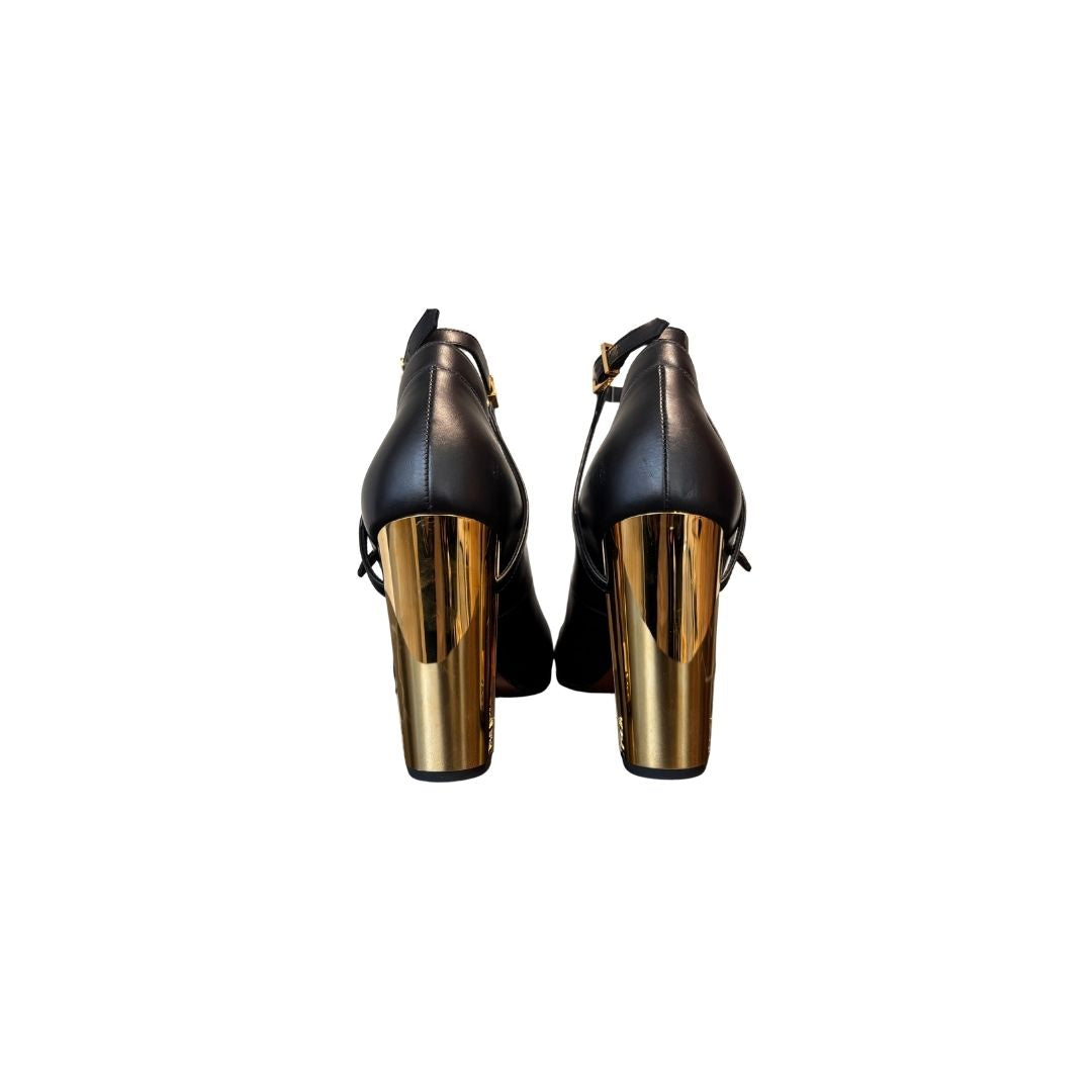 Zapatos Fendi con tacón y strap en el tobillo el piel color negro con herraje y tacón dorado.Talla: