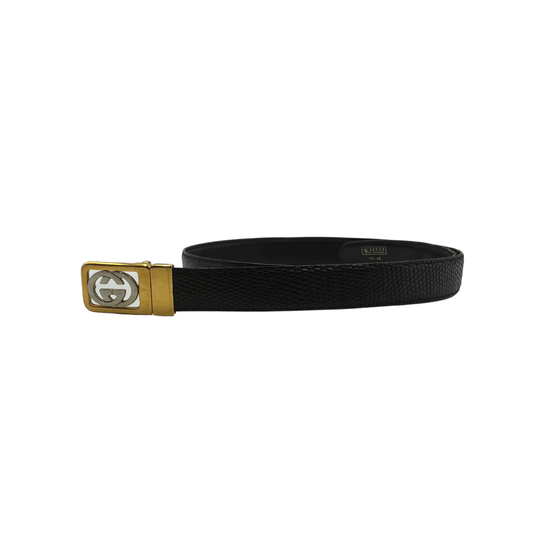 Cinturón de piel doble vista color negro y con piel de serpiente de un lado color negro, herrajes dorados y plateados doble GG VINTAGE