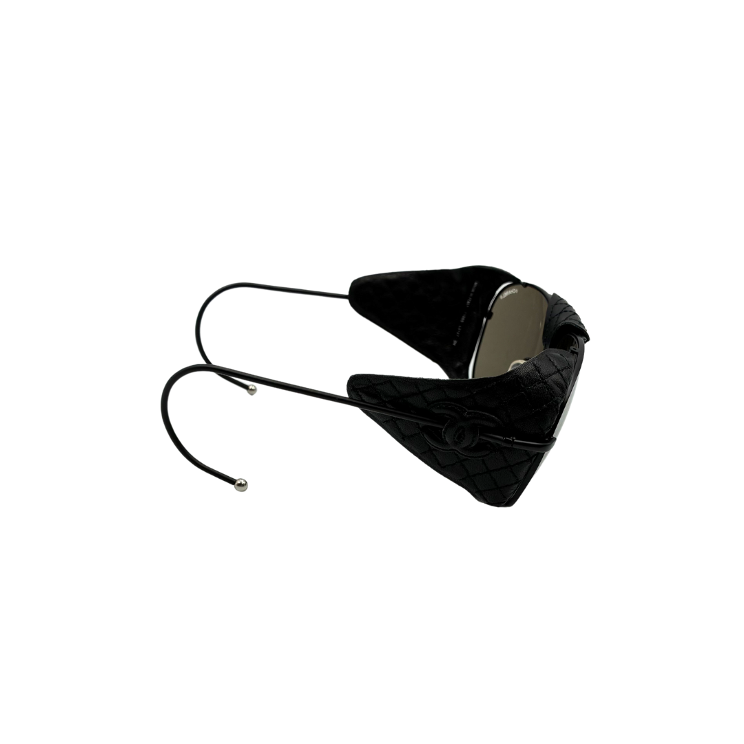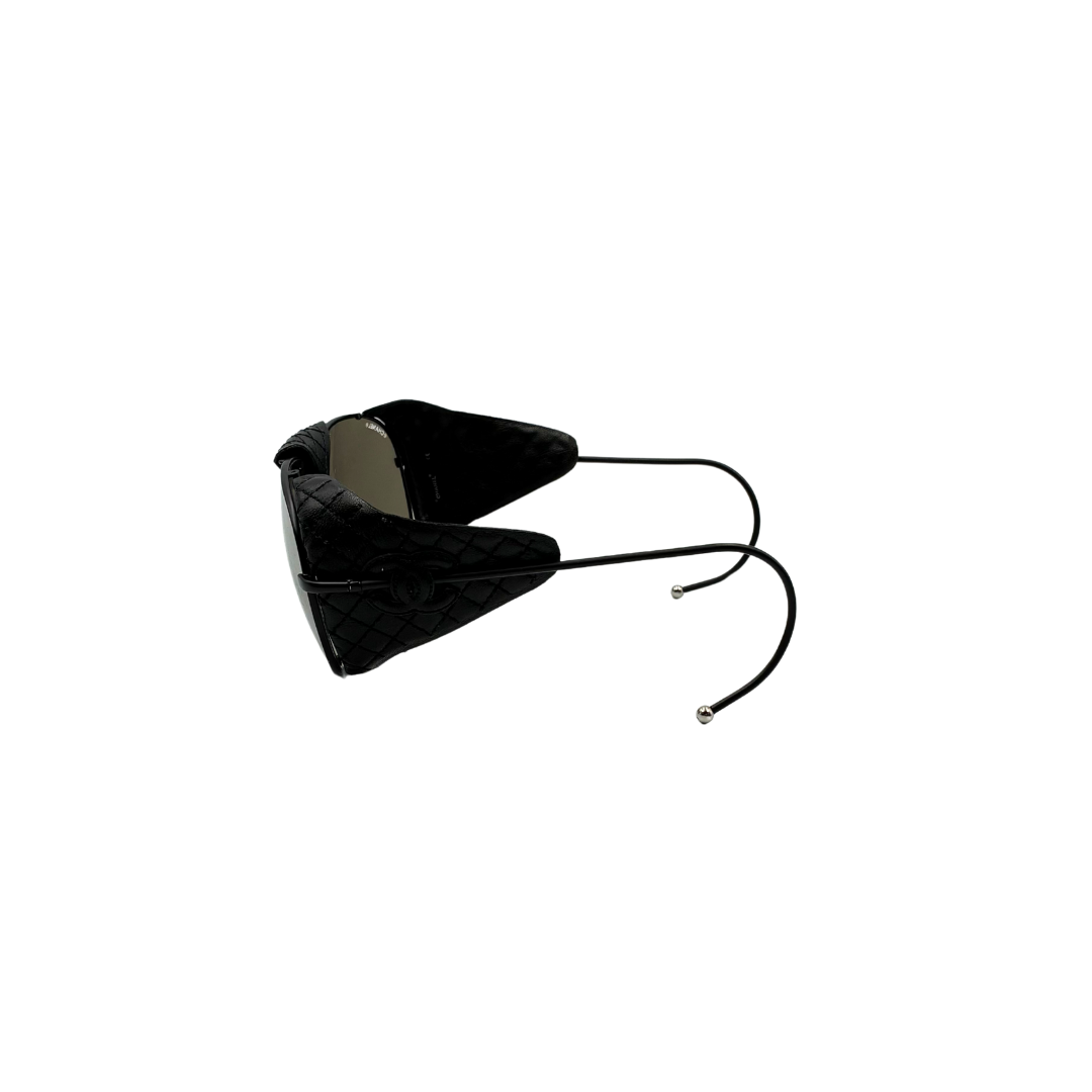 Lentes Chanel de aviador con toques de piel en los laterales y en medio color negro, herrajes plateados.